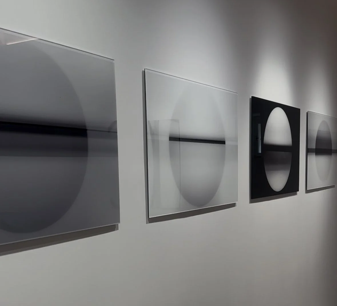 The Topology of the Edge presents photographic works by Karolína Jež and spatial objects by Jakub Grosz. Through the language of minimalist geometric abstraction, both artists explore the mutability of boundaries and structures. Lines that at first appear firm and sharp dissolve into soft gradients under certain angles.