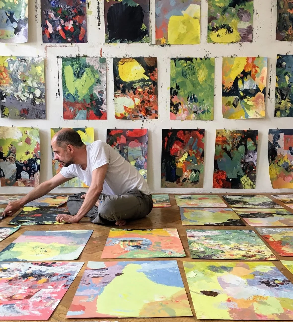 Hüller's artistic practice is rooted in abstraction and driven by intuition, chance, and layered visual storytelling. His work often explores the boundaries between form and meaning, inviting viewers to engage with open-ended narratives.