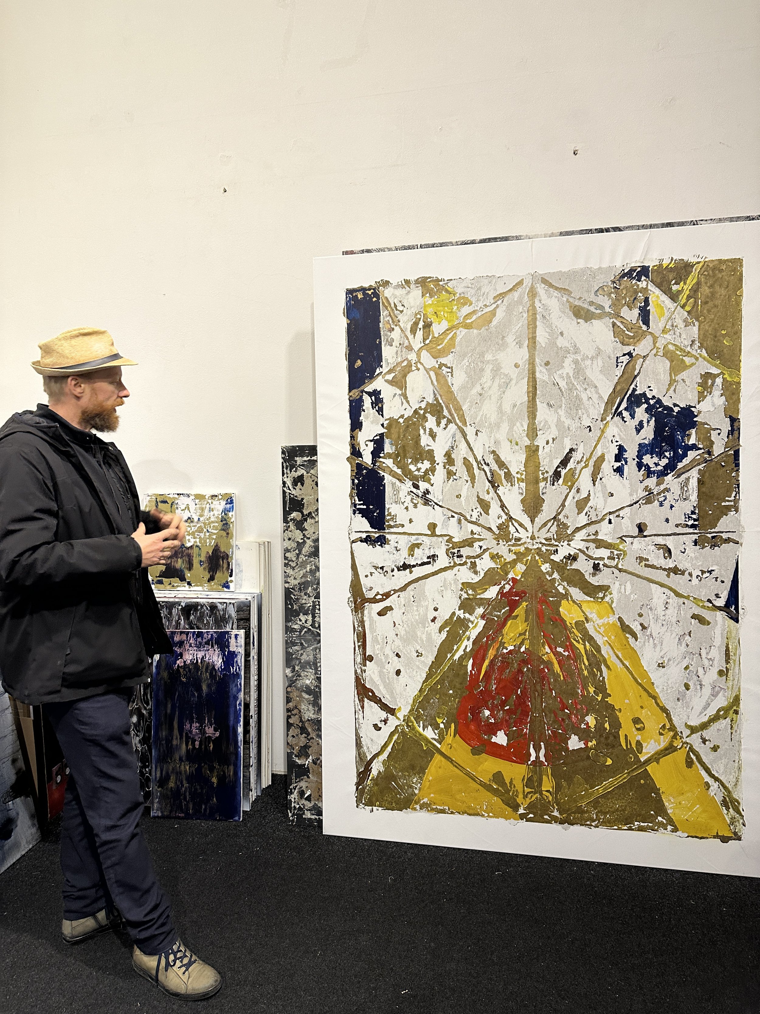 I am fascinated by Patrik's work. It is a process where color comes to life within deep internal structures, offering a unique dialogue between layered painting and the viewer. His pieces push the boundaries of traditional imagery; they internally transform the entire space and infuse our gallery with a raw, organic energy. For me, wanting to exhibit Patrik Hábl was a given! He has displayed Lenten cloths in the Church of the Most Holy Saviour and also created an intervention in a Buddhist temple in Kyoto. Patrik is essentially the 'court painter' of modern sacred abstraction in Europe. To enter such a space with contemporary abstraction is, in the ecclesiastical world, akin to winning the Olympics." —